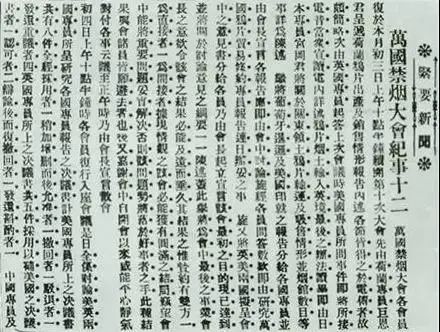 ▲《申报》刊登的关于万国禁烟会召开情况的报道