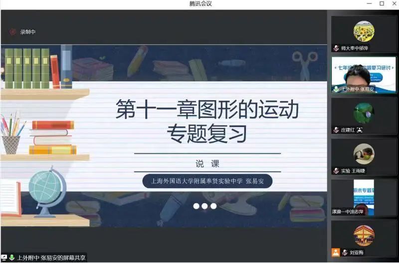 与会教师在活动前观摩了来自奉贤区四个教育集团的老师精心准备的复习课(视频或教案)。活动中,四位老师对这四节课根据刚刚开启的线上教学特点进行说课。