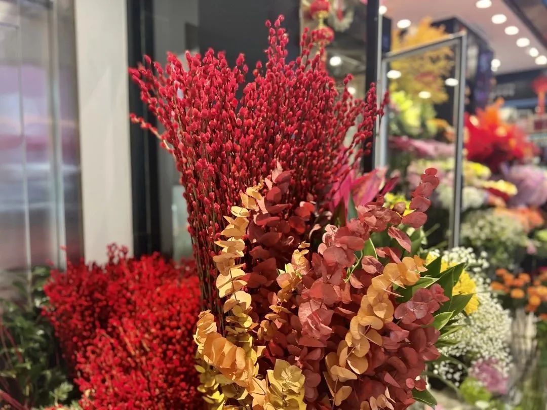 除了传统的花卉盆栽、鲜切花以外,可自己动手DIY的红红火火年宵花“福桶”也备受顾客的追捧和青睐。在位于静安寺地铁站旁的一花店,各式福桶占据该店铺的主要位置。
