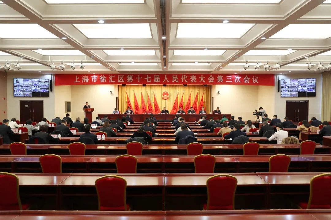 上海市徐汇区第十七届人民代表大会第三次会议于1月5日上午举行第二次全体会议。在主席台就座的有曹立强、钟晓咏、李新华、沈权、徐国文、卢鉴、朱伟红、赵允。会议由徐国文主持。