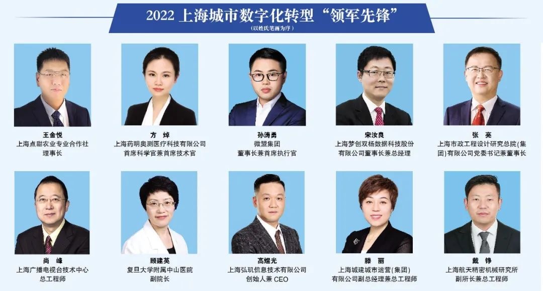 上海市政工程设计研究总院(集团)有限公司党委书记、董事长张亮荣获2022上海城市数字化转型“领军先锋”,上海勘察设计研究院(集团)有限公司信息院技术总监王吉、上海开放大学信息化建设与管理办公室主任肖君荣获2022上海城市数字化转型“智慧工匠”提名。