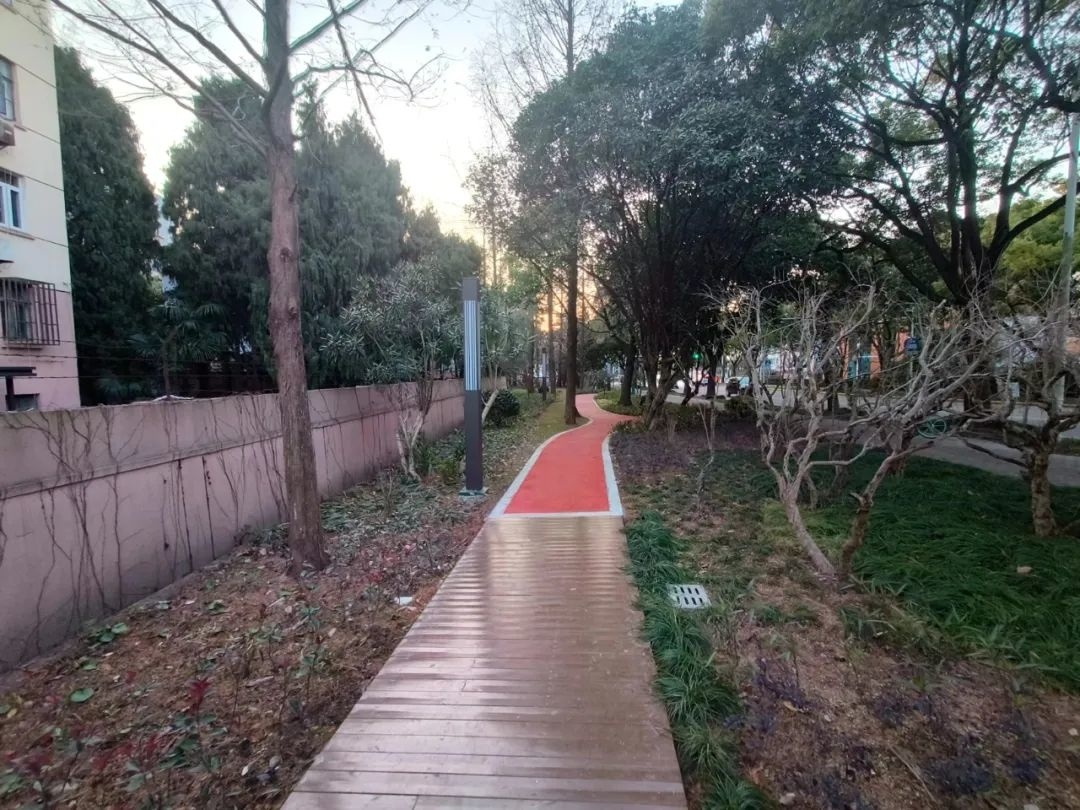 崭新的栈道、错落有致的时光长廊、蜿蜒伸展的塑胶步道……最近,沪杭公路(蒙山路-富川路)、沪杭公路(富川路-戚家墩路)南侧的绿荫处,多了条供市民休闲的绿地景观道。家住附近的王阿婆表示,现在只要有空就要来这里锻炼,“本来这条路很破旧的,现在造得很漂亮,我很喜欢来这里散步”。