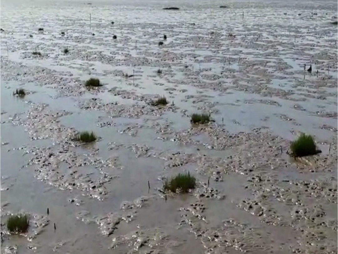 崇明东滩保护区滩涂,修复前,大部分自然滩涂均为无植物生长的光滩