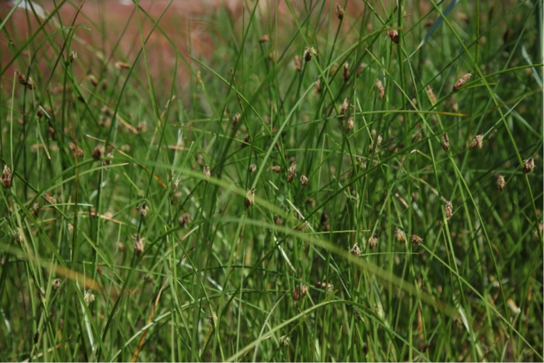 海三棱藨草是莎草藨草属的多年生草本植物,根状球茎匍匐,根系发达。能够很好地适应淡咸水交界、每日受到两次潮汐影响的特殊生境,具有耐盐、耐淹、耐淤埋、耐风浪冲击、生活力旺盛、繁殖能力强等特点。