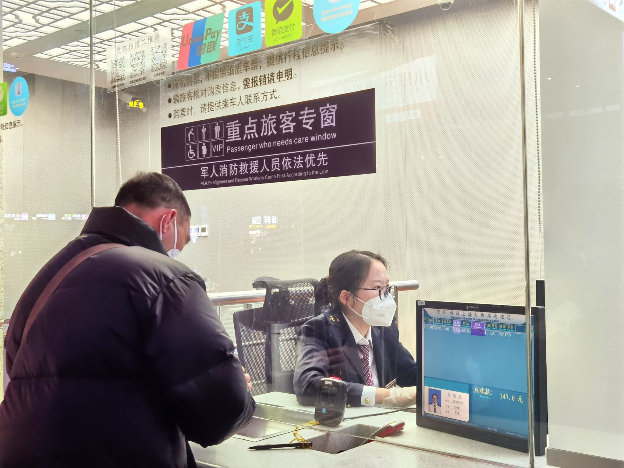 春运期间,铁路上海站开展“从心遇‘尚’你”春运服务行动,提升旅客出行体验。