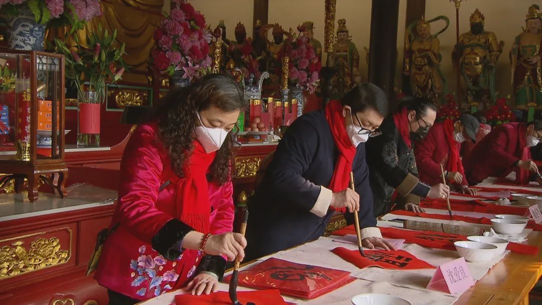 1月6日正值农历腊月十五,上午阳光明媚,天气晴好。深受社区居民喜爱的迎新春送春联文化活动——把“福”带回家,在华泾路858号宁国禅寺大雄宝殿前温馨开笔。浓浓的传统民俗年味,拉开了新年“文化迎新春”的序幕。