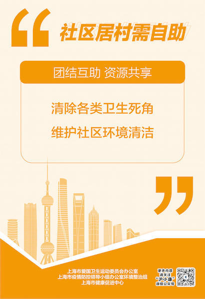 社区居村需自助 全市所有社区居村需要团结自助,适当提高清扫保洁频率,清除各类卫生死角,清理垃圾杂物堆放;垃圾箱房定时清理、消毒和密闭,有效管理建筑垃圾;治理车辆无序停放、快递无序乱堆。发挥楼组长和爱国卫生志愿者的作用,邻里互助,资源共享,维护社区环境清洁。
