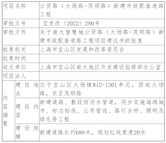 起迄点:西起大场路,东迄茂顺路(规划名)