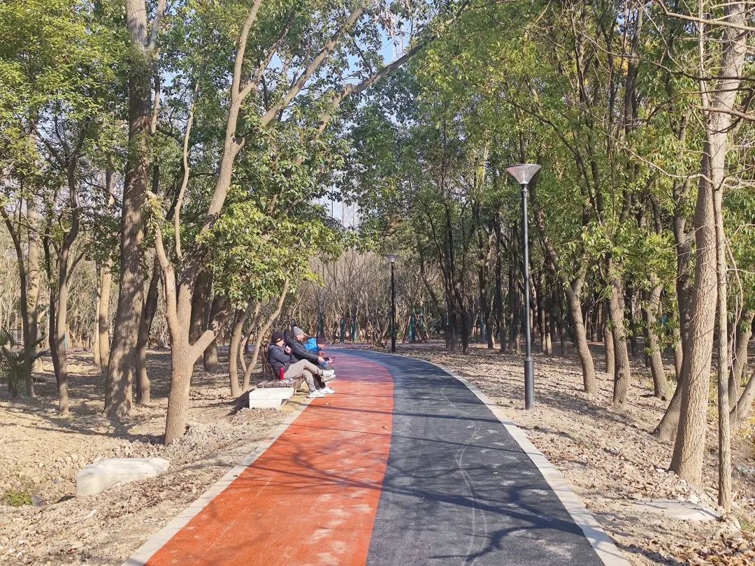 1月6日下午天气晴好,沿着绥德公园贯通的郊野绿道,记者一览改造完成后的公园风貌。据悉,公园原本作为外环防护林,具有良好的生态基础,有大片优质水杉林及香樟林,杨家木桥浜等多条水系贯穿其中。
