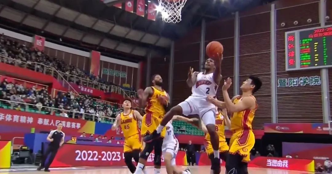 上海久事男篮常规暂停结束后,布莱德索表现出色,连续上篮得分为上海久事男篮再次拉大比分优势。