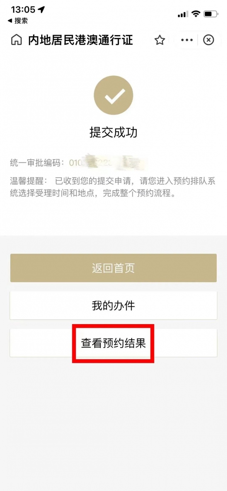 提交成功后等待1-2分钟后直接点击“查看预约结果”按键查看预审结果。