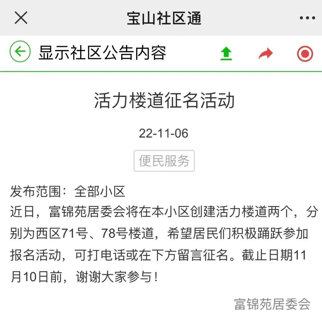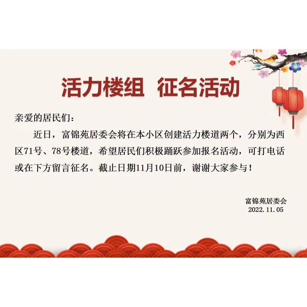 为了更好地宣传社区文化、打造“活力楼道”,富锦苑居委会在小区电子屏上告知了居民们活力楼道的创建,广集小区居民的建议给活力楼道取名。居民们通过“社区通”等方式留言,经过几天的讨论,最终命名为“画趣楼”“拾趣楼”。