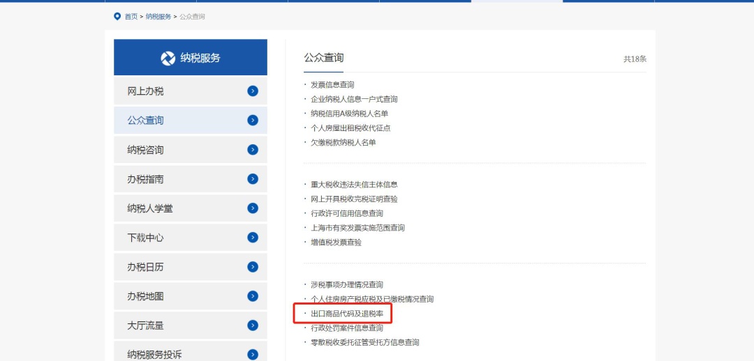上海市税务局官网(https://shanghai.chinatax.gov.cn/)——我要查询——公众查询——出口商品代码及退税率。