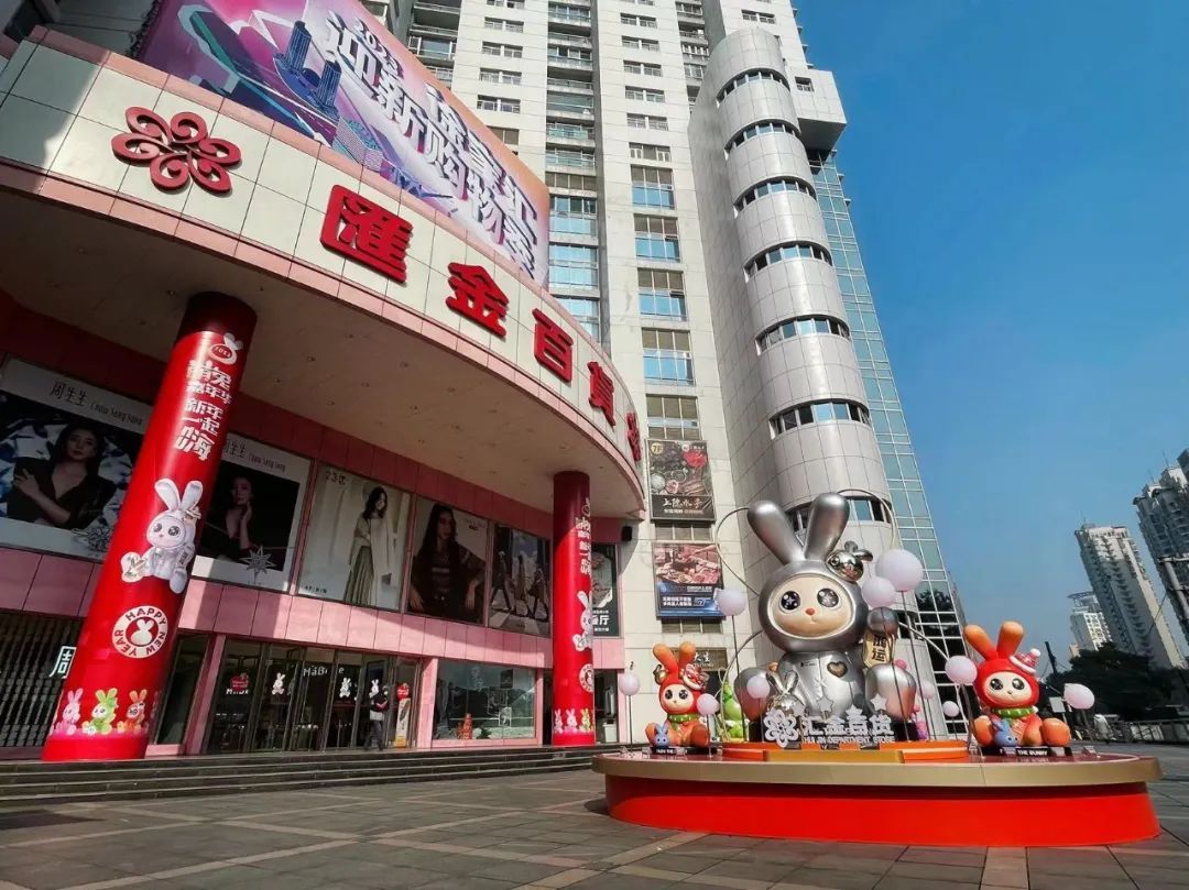 举步之间,就走到了徐家汇。港汇恒隆广场前,已然换上了新装。汇金百货门口新登场的萌兔嘉年华,营造出兔年的萌趣氛围。