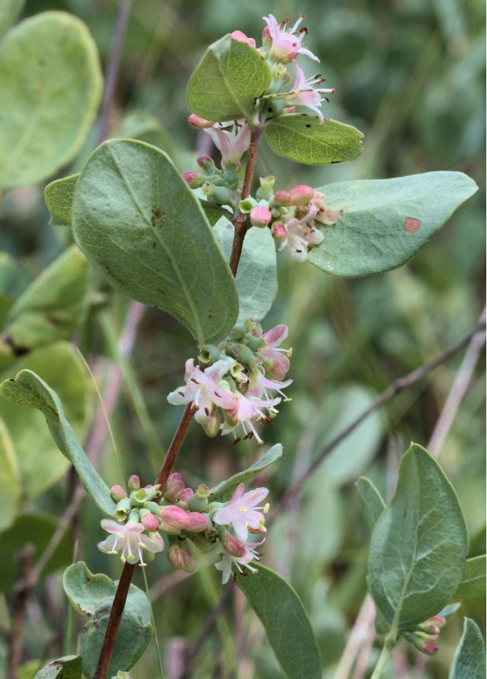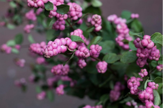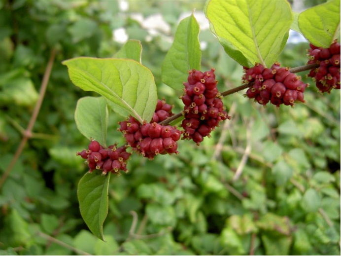 圆果毛核木,又名小花雪果,属忍冬科毛核木属落叶灌木,高可达2米,小枝细而密集,叶小而细密;夏季开出细碎的串状花穗;秋冬季节结出浆果状的紫红色球形核果,这些果实可宿存至翌春。圆果毛核木耐寒性极强,可耐-30℃的低温,喜光,也稍耐阴,耐瘠薄土壤。原产美国、墨西哥。圆果毛核木在上海已引种多年,生长结实良好。