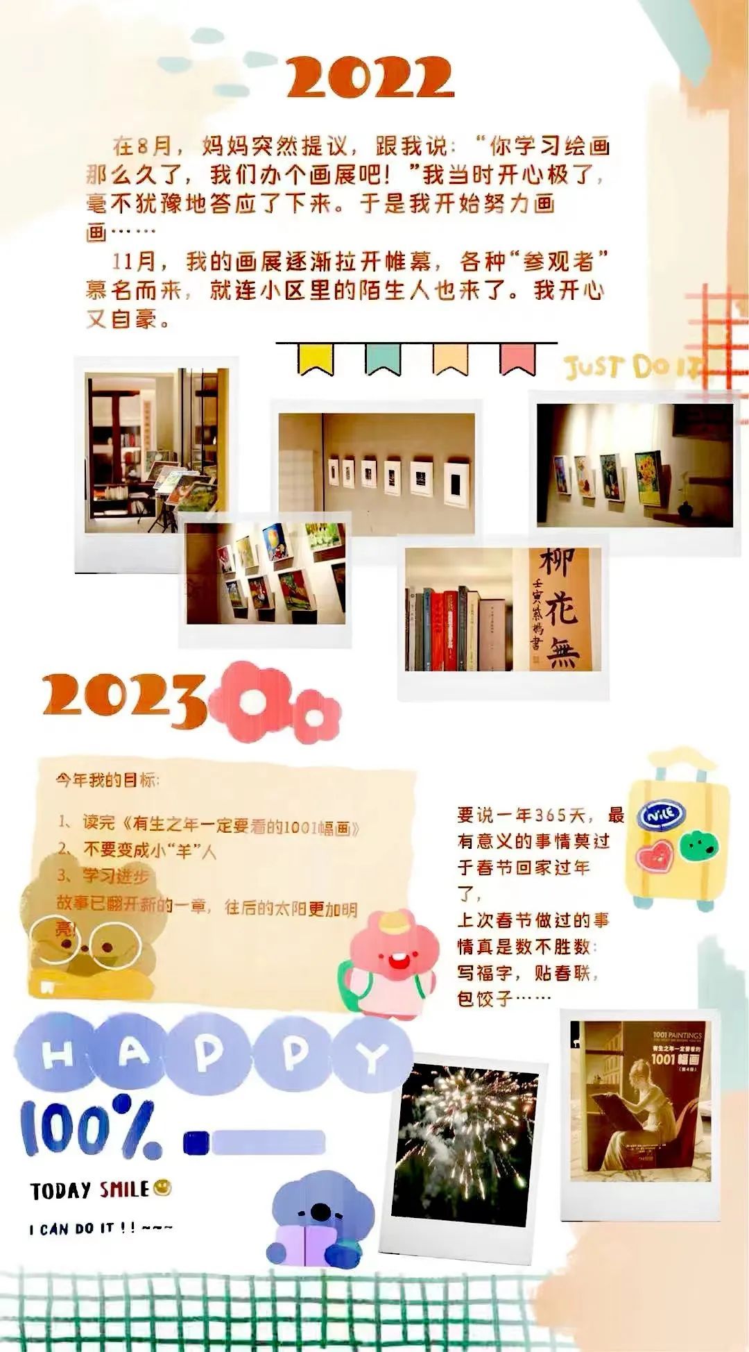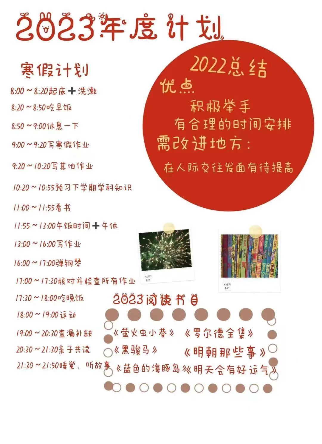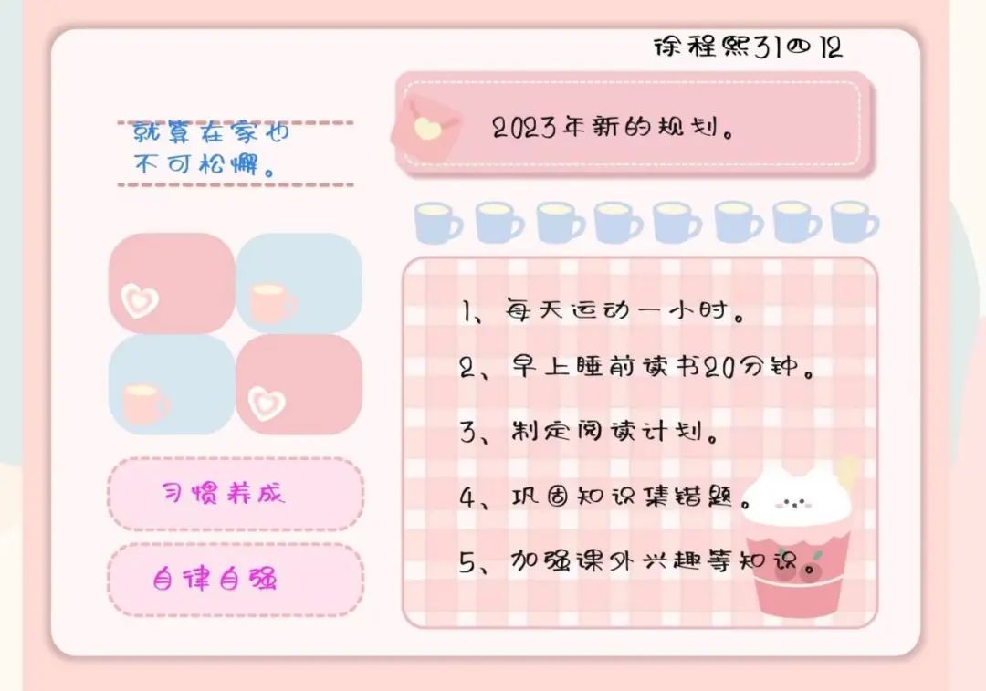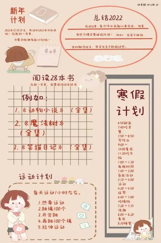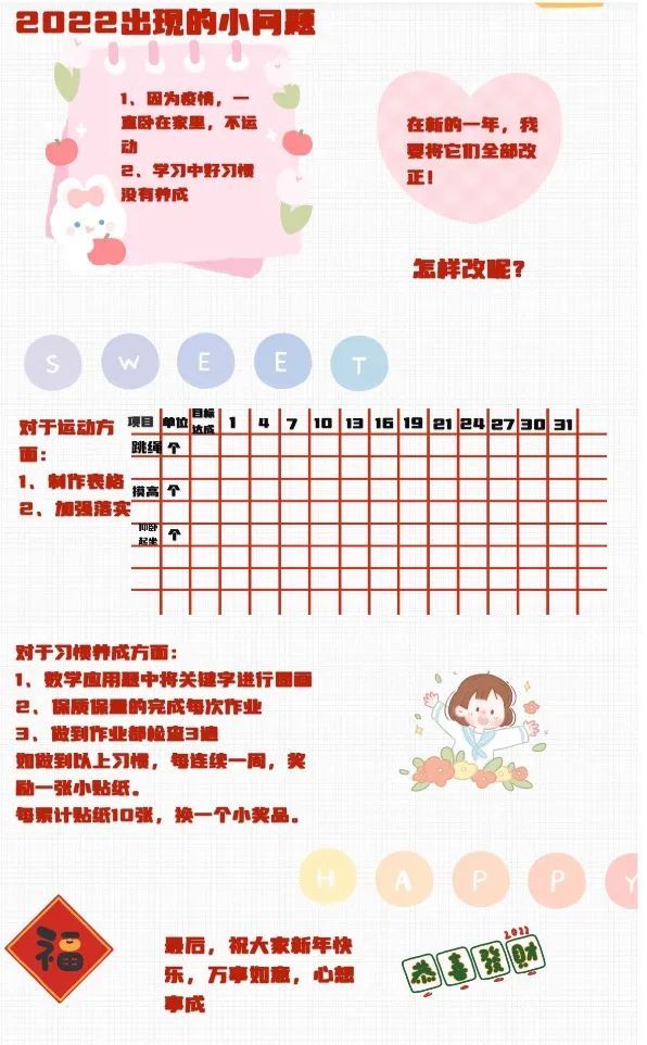 我也建议孩子在新的一年中,以图文并茂的形式记录每一个生活中的瞬间,并且以终为始,善于通过不间断地与新年计划的对照,发现自己的成长与提升点。