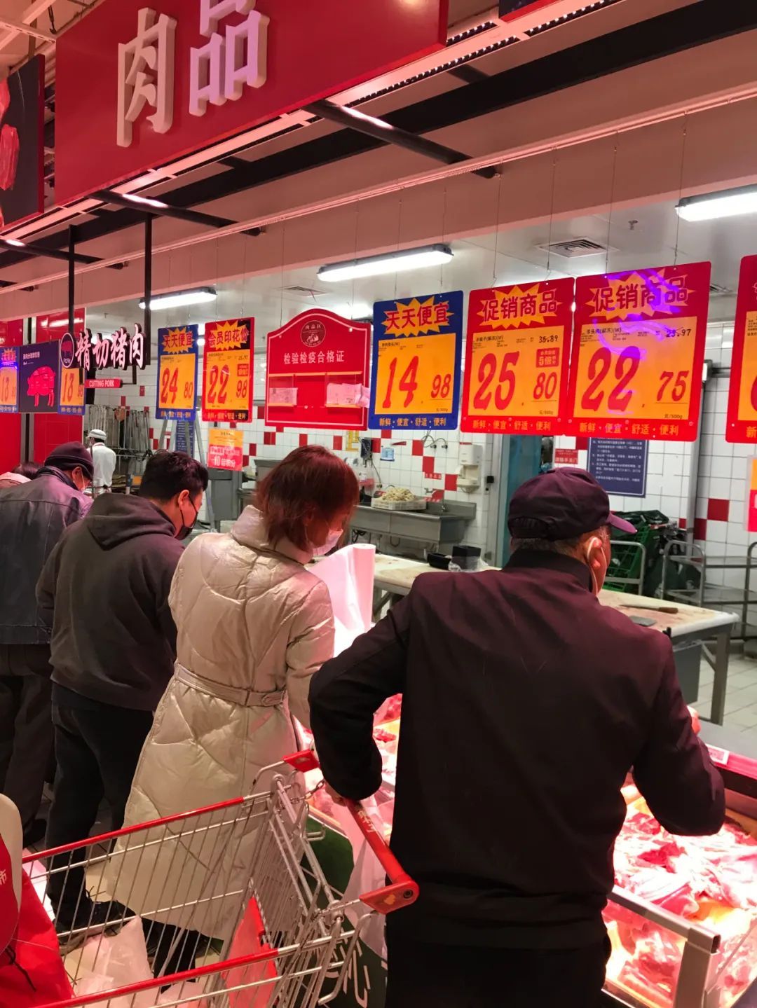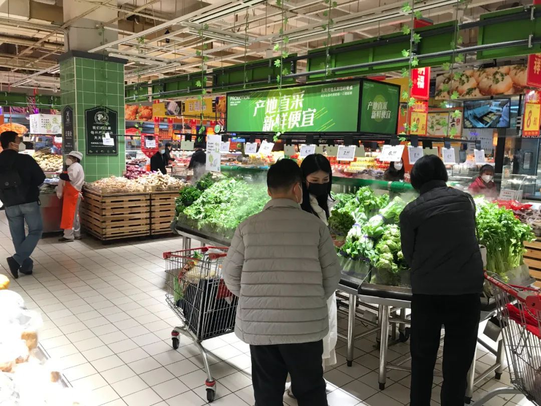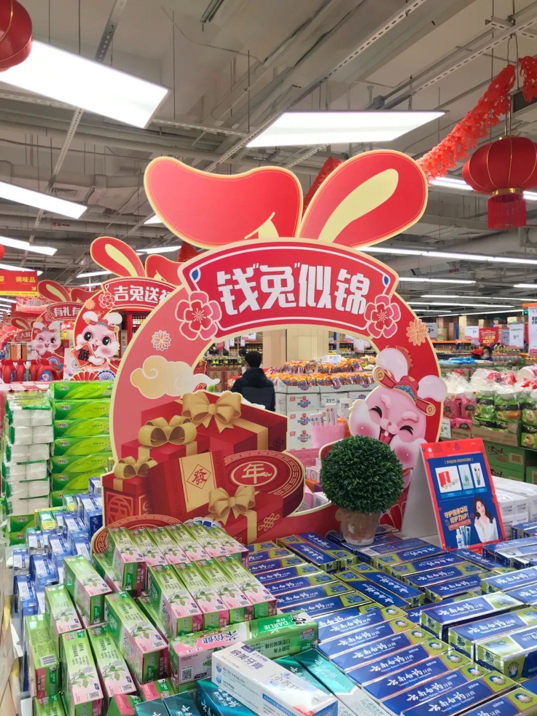记者首先来到永辉超市云间店,看到超市已经布置上了喜庆又可爱的展板,吉兔送福、“钱兔”似锦,大展宏“兔”等谐音吉祥话很是讨喜,各类年货满满当当,供应充足。