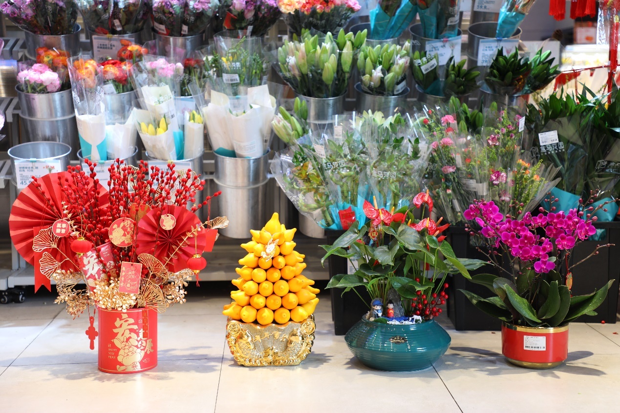 12月最后一周,盒马花园线上销量环比涨幅是高达60%。为了保障线上订单的品质,盒马今年对于年宵花的包装和配送都进行了升级。其中,中型盆栽采用“专箱专配”,由盒马小哥送货上门;冬青、发财树等大型盆栽则安排货拉拉进行配送,全力保障每一盆年宵花生机勃勃地抵达消费者家中。