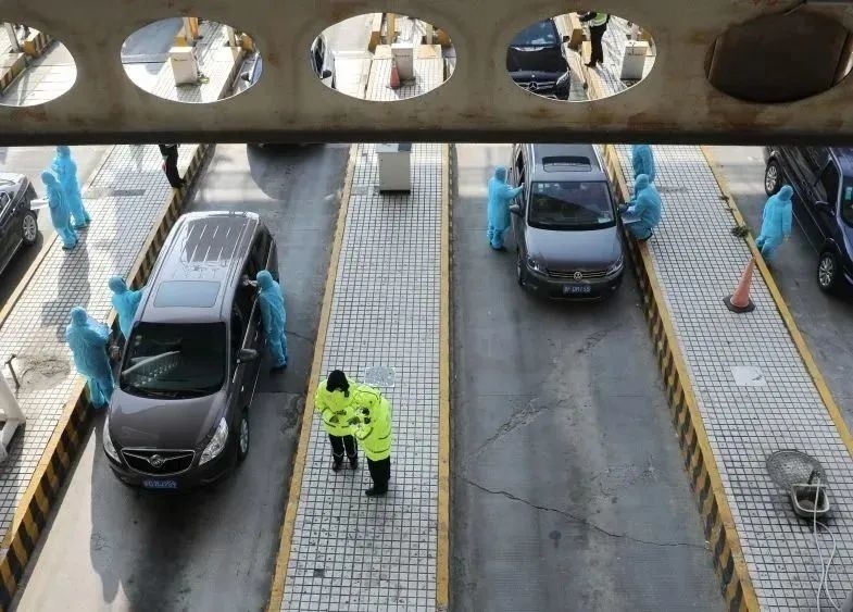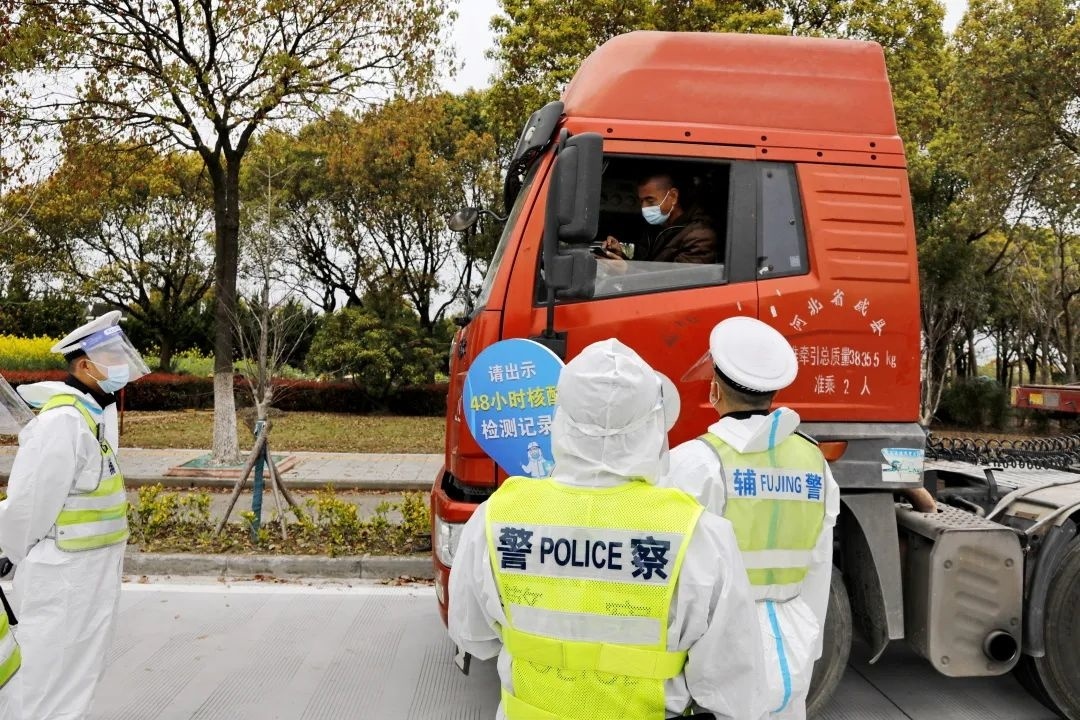 在公安金山分局新联检查站,干警在协助一辆外地货车司机登记。