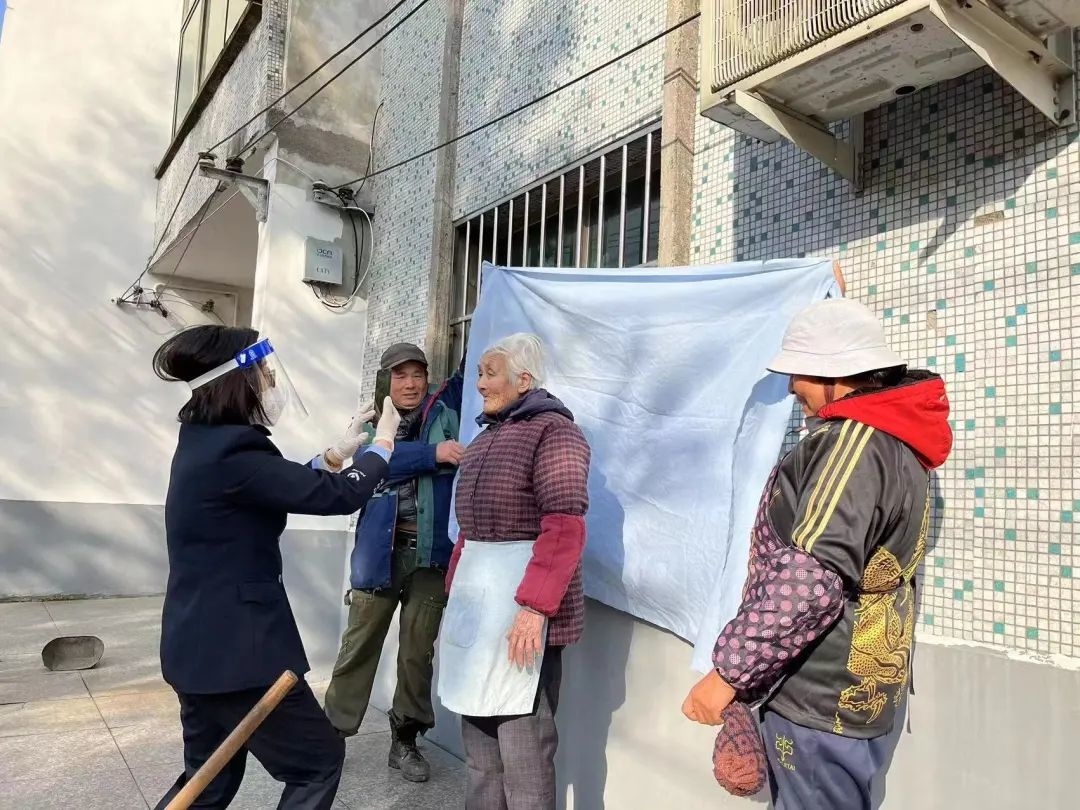 公安金山分局漕泾派出所民警陈婷为年迈老人上门拍照。