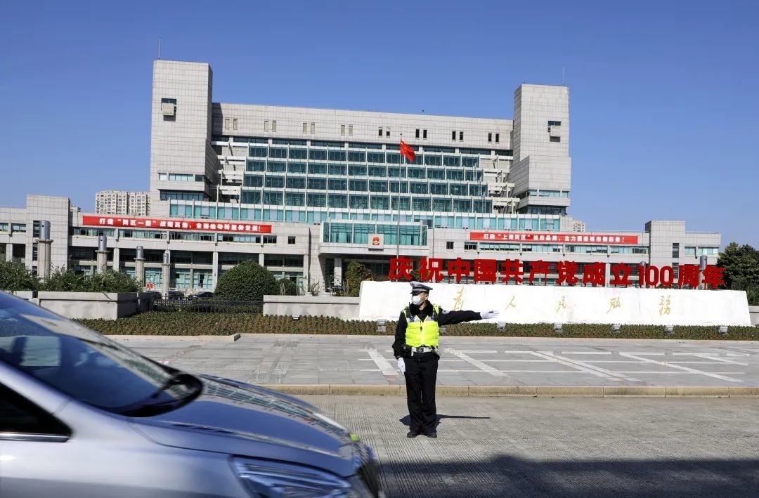 2021年11月,区第六次党代表大会期间,金山交警做好大会保障工作。