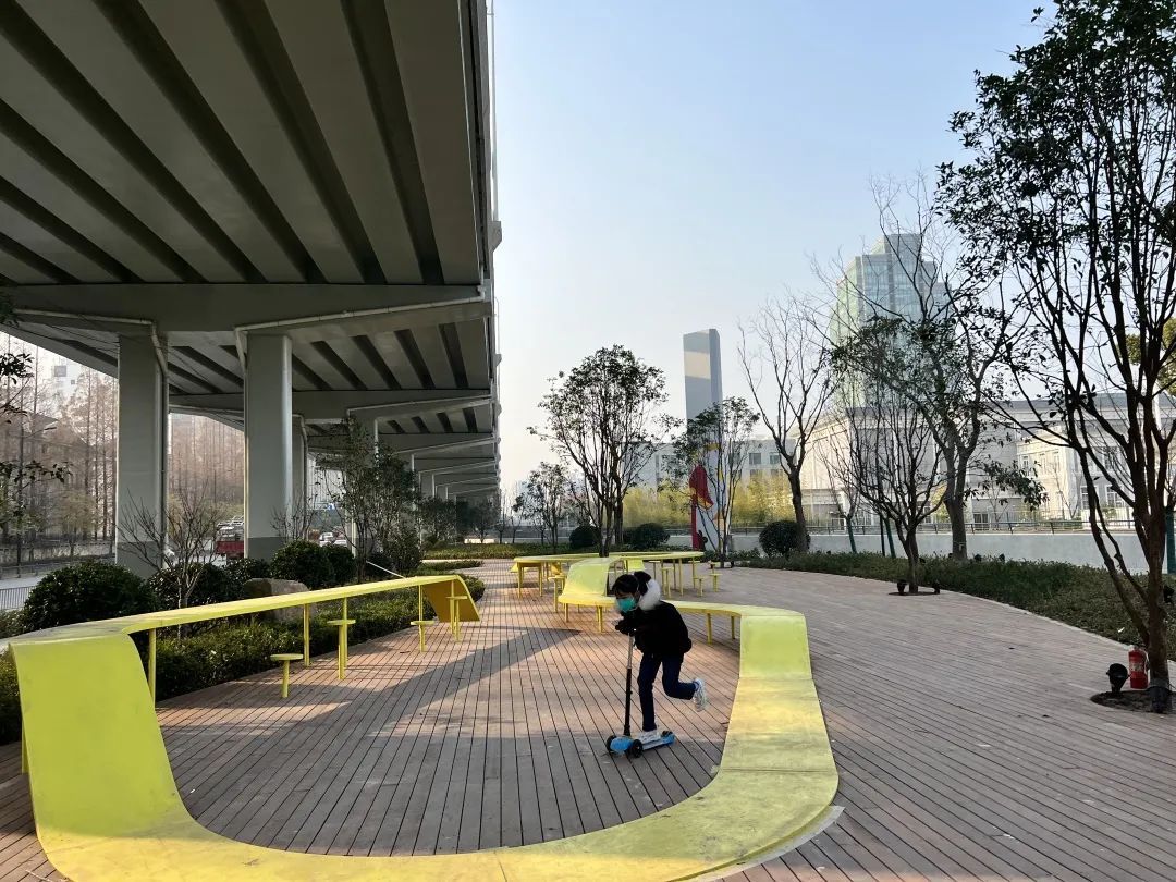 共融联动体现了城市与生态的融合,以及与人们的生活之间的协调;年轻化、艺术化是现代城市建设的缩影,同时也是“人民城市人民建”高尚品格的体现。共建和共创则体现了人在城市中主人翁的定位,是文化传承和发扬的有力保障。如今桥下滨水空间实现了人车分流、坡道盲道覆盖、植被物种丰富,待到春暖花开时,这里的自然环境还将带给人们不一样的视觉美感。