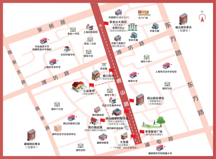 崂山路街事会党群服务站、公益里弄街区议事厅、多个社区公共空间、在建中的新街事会……经过1年多的努力,潍坊新村街道街区治理品牌项目——崂山路街事会已经初见成效。近日,崂山路街事会举行年终议事会,并发布街区治理地图,向公众展示这一成果。