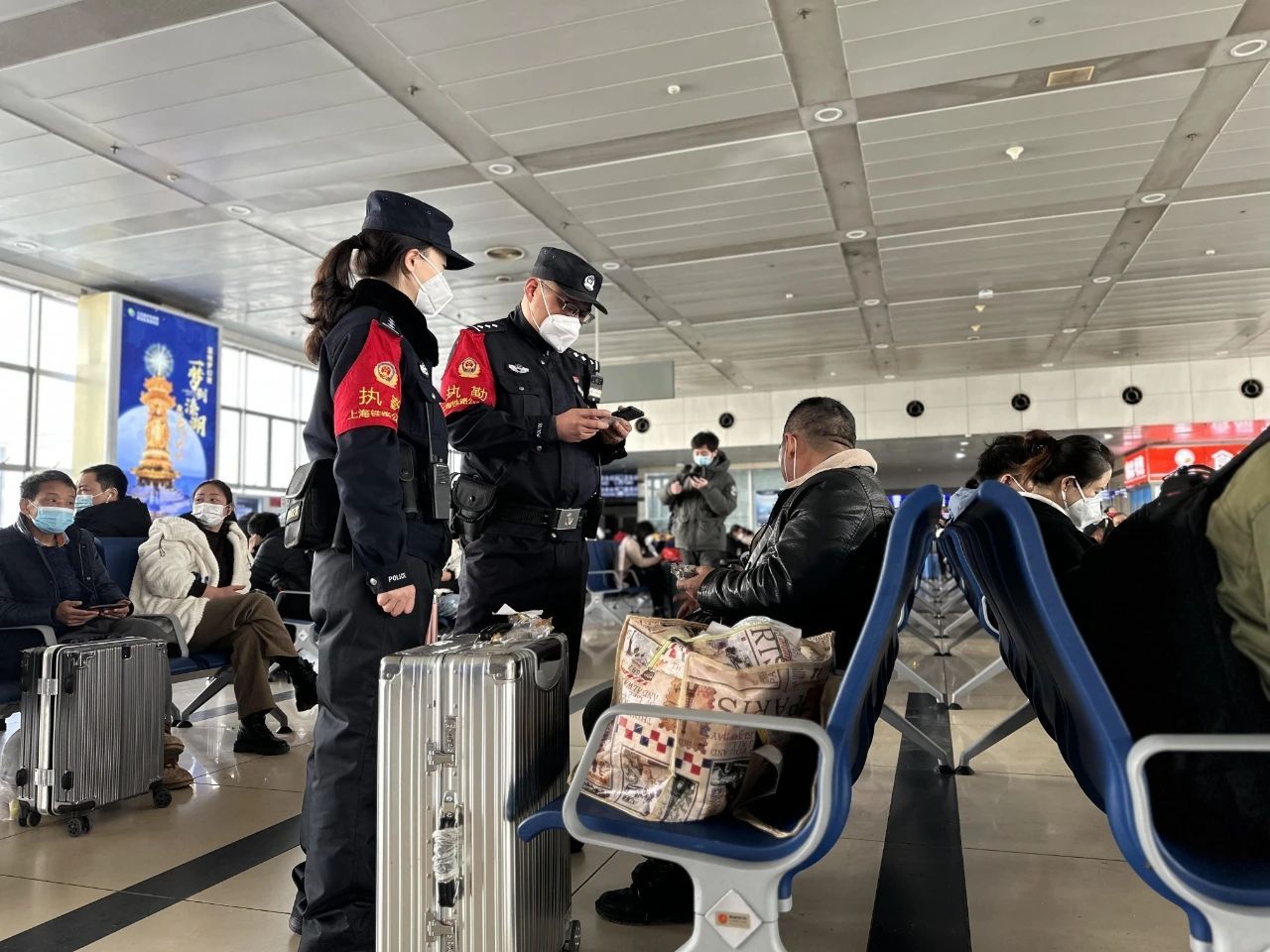 据介绍,连日来,铁路民警也加大安检查危,加强治安秩序维护和专项打击整治,严厉打击盗窃旅财、醉酒滋事等违法犯罪活动,全力确保出行的有序和车站的安全。