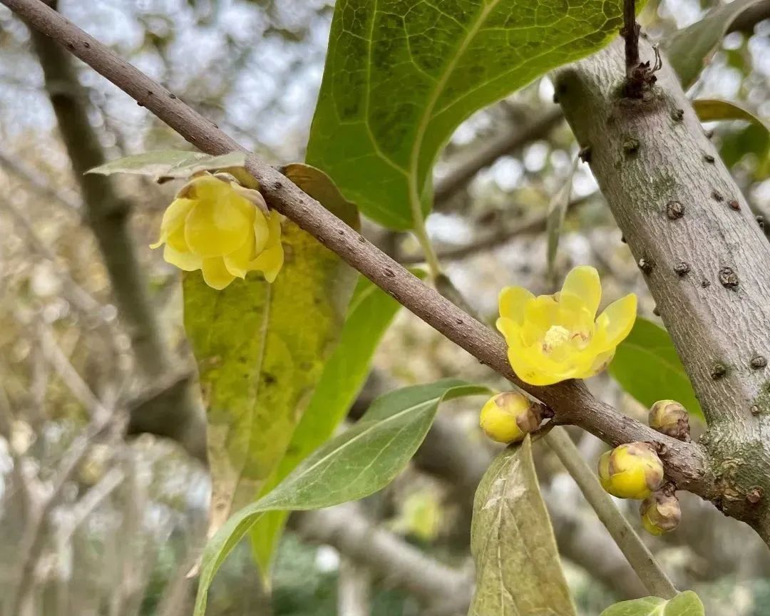 目前园区内蜡梅虽只零星几株,尚未形成规模。但渐次开放的黄色蜡梅,花香扑鼻,沁人心脾。