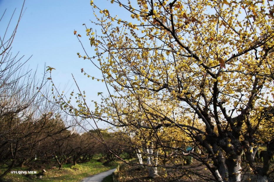 作为少数能在寒冬中开花的植物,蜡梅的观赏效果相比梅花稍有逊色,更多是以点缀种植,因此园内蜡梅的种植数量并不算多,主要分布在梅园和花海区域。