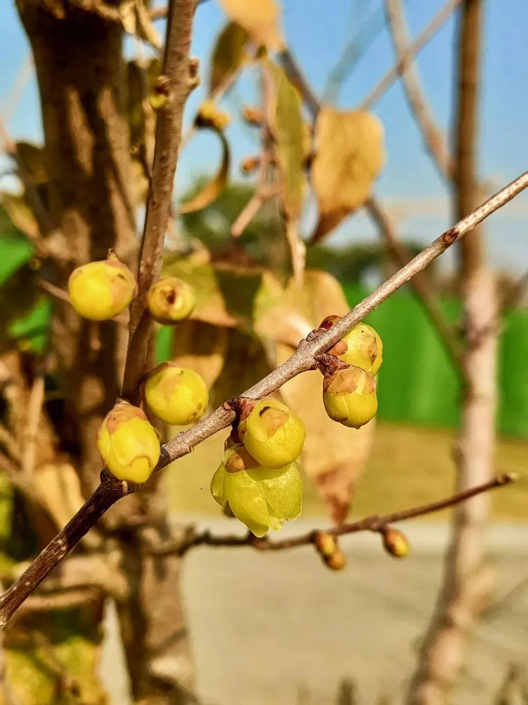 世纪公园的蜡梅已含苞待放,树上缀着大大的花苞,为绽放做好了准备。今年因温度原因,蜡梅花叶果同挂枝头,许多树叶和果实还来不及凋落。目前园内种植了近500多株蜡梅,内外兼美的蜡梅,暗香浮动,黄花累累,斗寒傲霜,绽放自己的美丽。