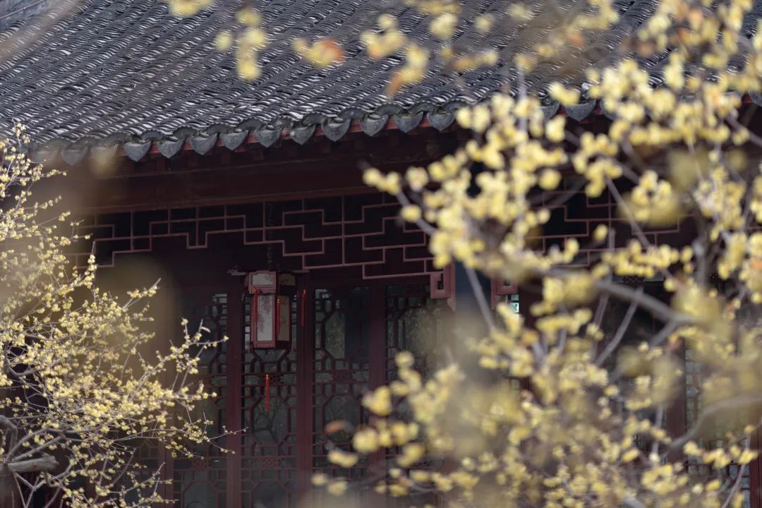 此外,暗香园内的素心蜡梅此时也已绽放,花瓣与花心都是同样的颜色,黄色的花瓣晶莹剔透,暗香阵阵。蜡梅与园林中的建筑、小品、山石结合形成不同的古典园林画卷,别有韵味,最佳观赏期可以持续至1月下旬。
