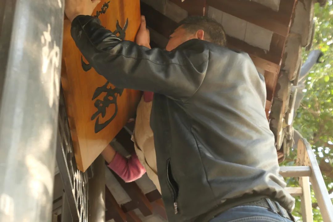 此次更新的两处匾额,一处位于逸野堂前面的猗园老正门,一处位于南大门附近的南亭,由苏州市吴中区非物质文化遗产(匾额工)采用堆煤、披灰等传统工艺匠心设计制作,精选耐风吹日晒的老杉木和银杏木材料,历时三十余天制作而成。安装时,采用的配件,样式也是精心挑选的,力求尽善尽美。“猗园”书体采用嘉定四先生娄坚的作品,“南亭”采用的是胡问遂的书法作品,两者都属于集字。“猗园”配色为金底黑字,“南亭”配色为银杏底黑字。