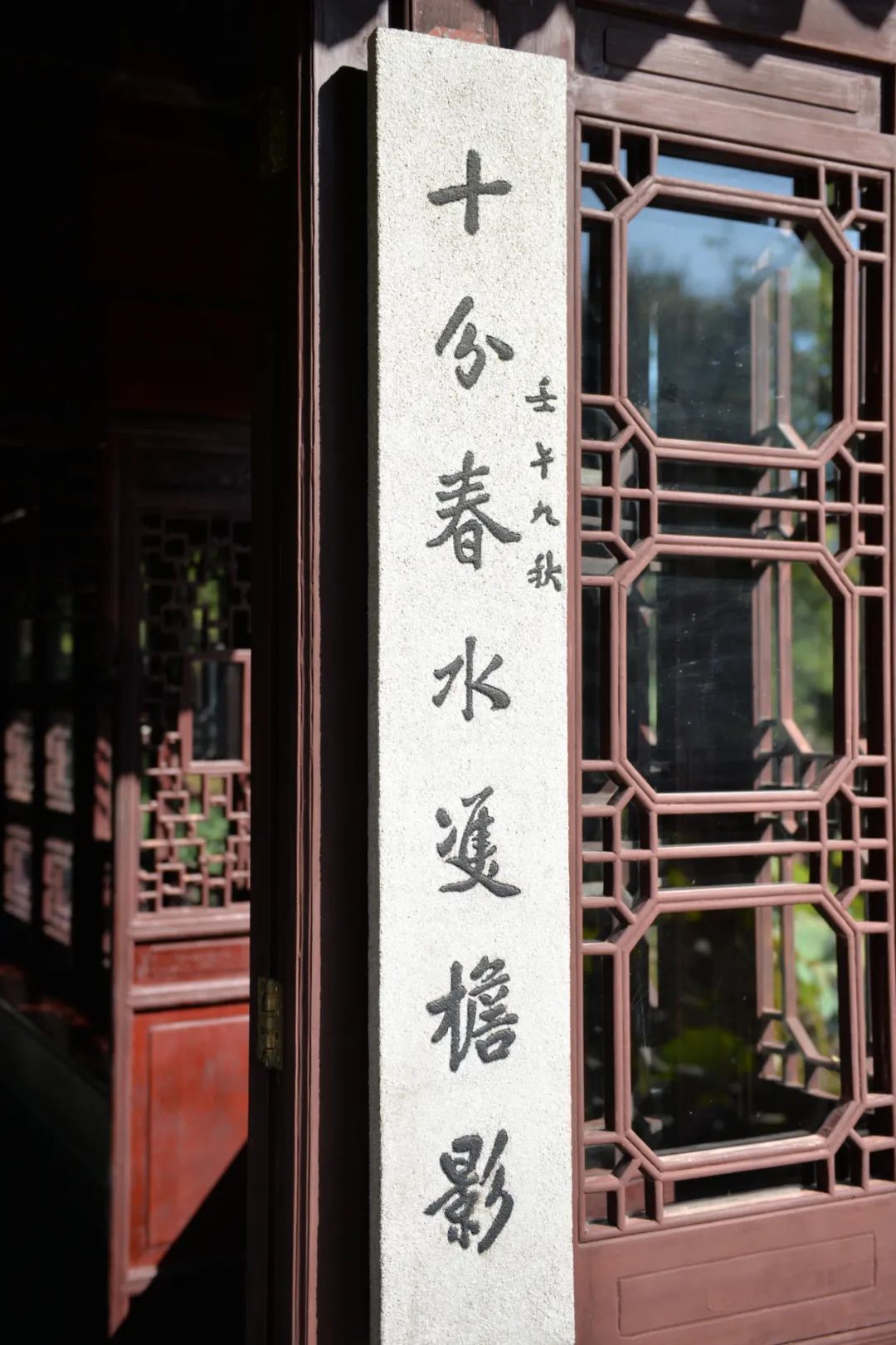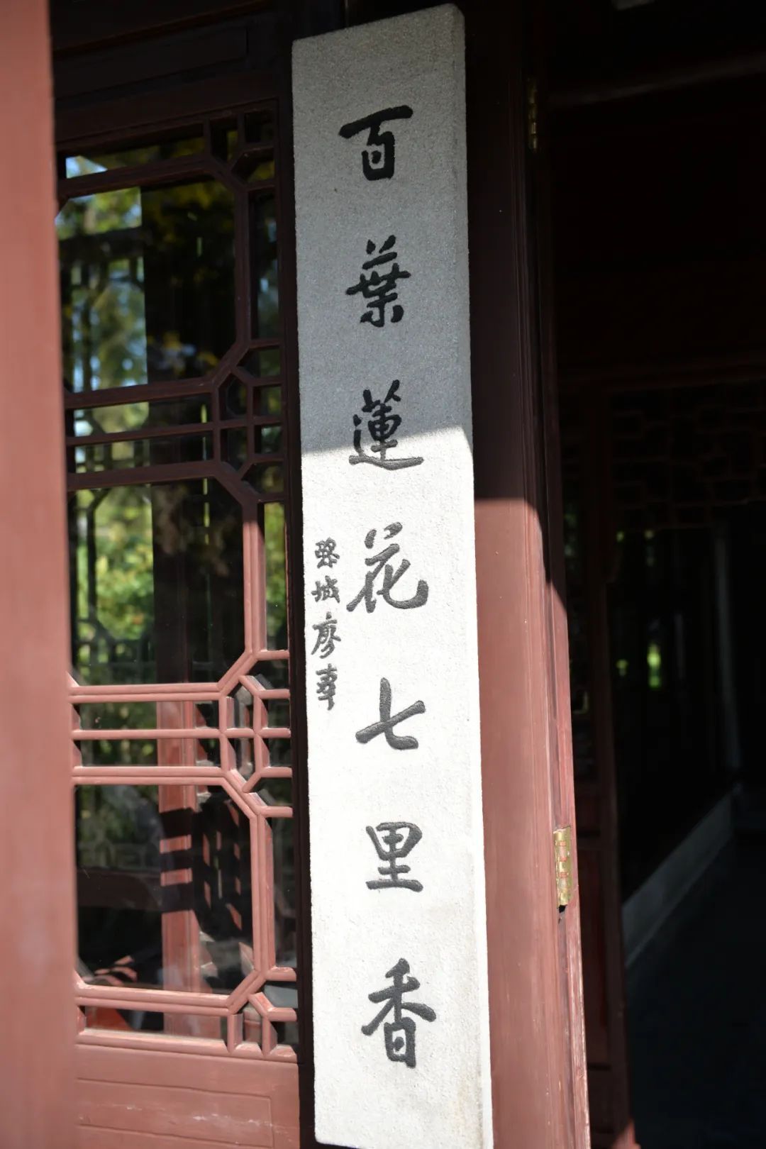 (“十分春水双檐影,百叶莲花七里香”,不系舟楹联,清光绪八年进士廖寿丰书)