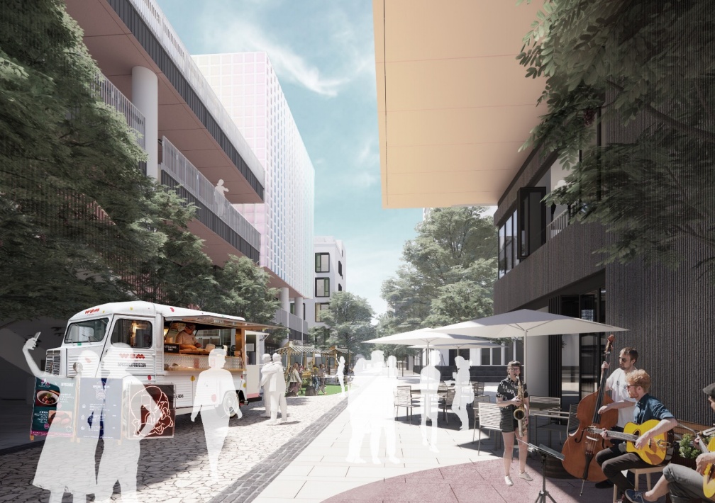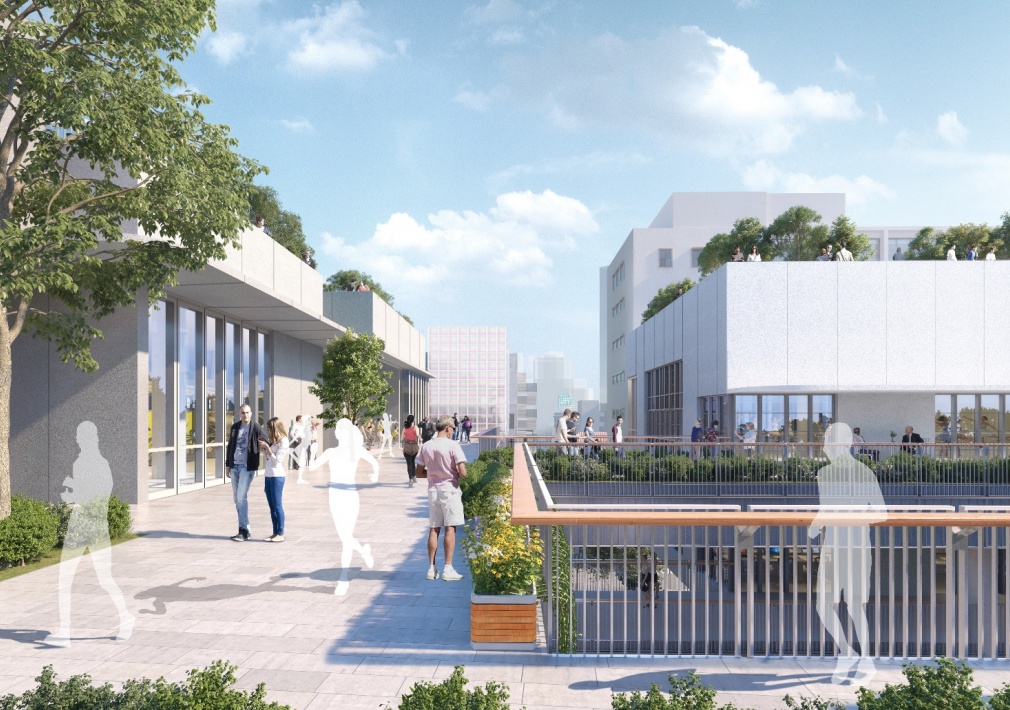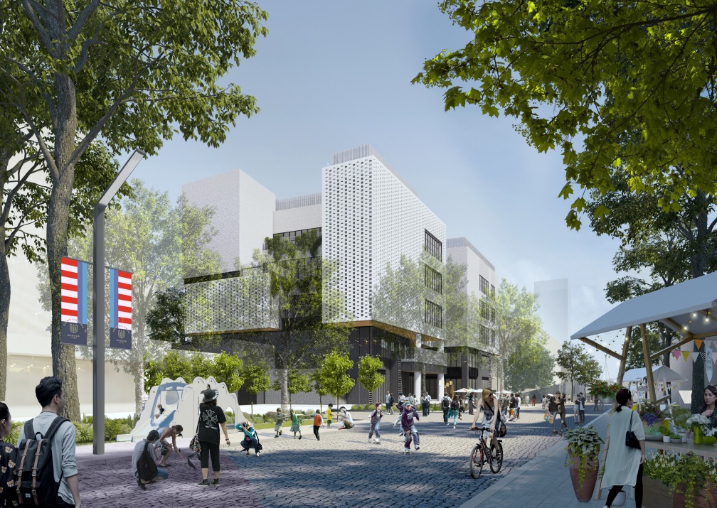 通过效果图可以看到,这片新园区拥有简约独特的建筑特征,灰白、原木色系为主,辅以红色元素等跳色点缀,为空间增添了一丝活泼和灵动。多层立体建筑融入了诸多露天设计,是难得具备“呼吸感”的中心城区办公场景。以“绿色低碳、自然友好”为出发点,建筑将多方整合绿色植物,塑造“垂直绿色生态”。紧跟“15分钟社区生活圈”规划,二期项目特别留出空间用于呈现城市会客厅、艺术装置和城市家具等,未来将成为市民共享的休憩休闲场所。