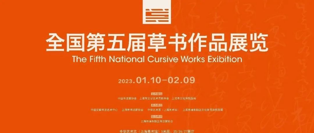 2023年1月10日,由中国书法家协会、上海市文学艺术界联合会、上海市文化和旅游局主办,中国文联书法艺术中心、上海市书法家协会、中华艺术宫、上海市浦东新区文化体育和旅游局承办,上海市浦东新区书法家协会协办的“全国第五届草书书法作品展览”“全国第五届草书作品展览名家邀请展”在中华艺术宫正式启幕。