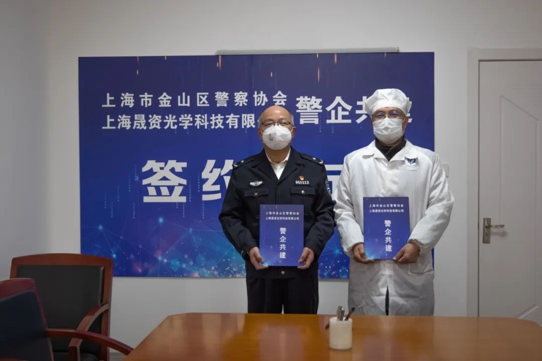 2023年1月10日是第三个中国人民警察节。值此节日,落户于上海湾区高新区的上海晟资光学科技有限公司与金山区警察协会,在晟资光学一楼大厅签订了警企共建合作协议书。