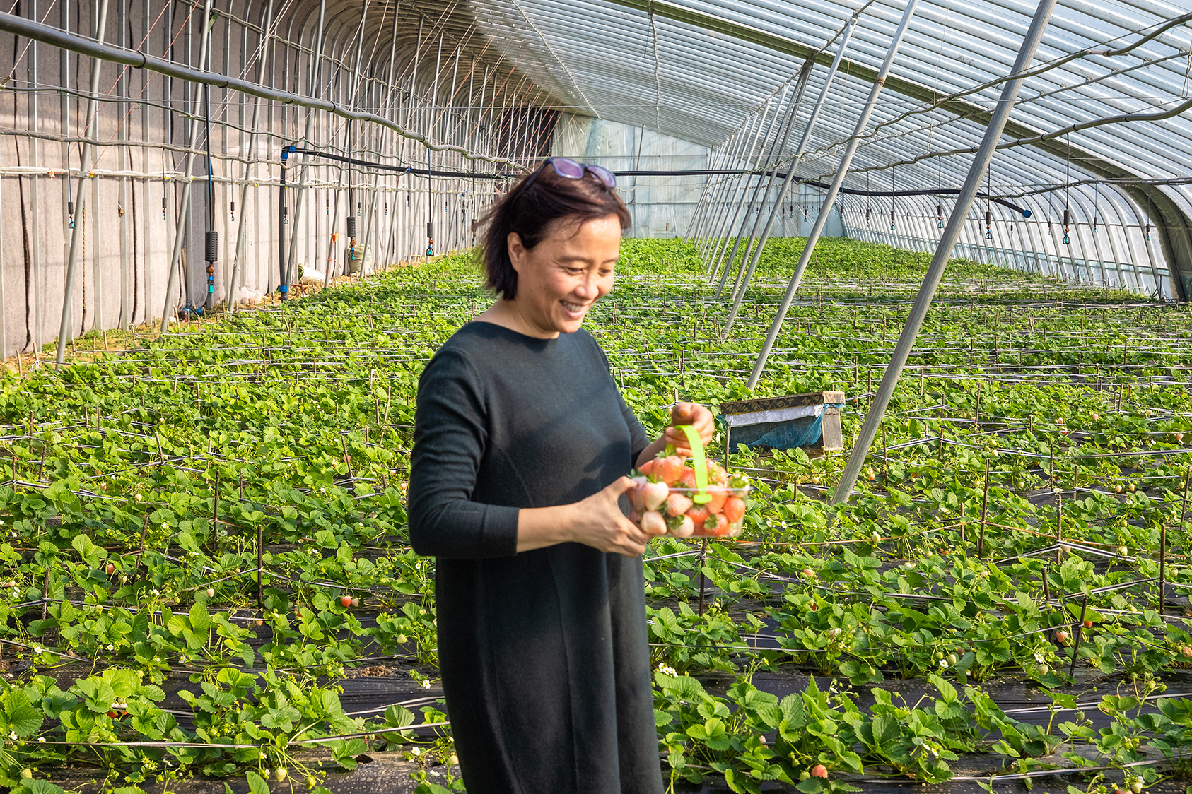 摘一颗草莓品尝,酸味不大,甜味清淡,香味浓郁,入口即化。如此香糯的草莓咋培育?农场负责人许朋叶说,这里的草莓品种有粉玉、淡雪、香蕉,用的是有机肥,不使用除草剂,最关键的是施肥用中草药营养液,不光提供草莓生长的各种营养成分,还增强草莓苗的抵抗力免疫力,像中医“治未病”一样种草莓,自然味道香糯。