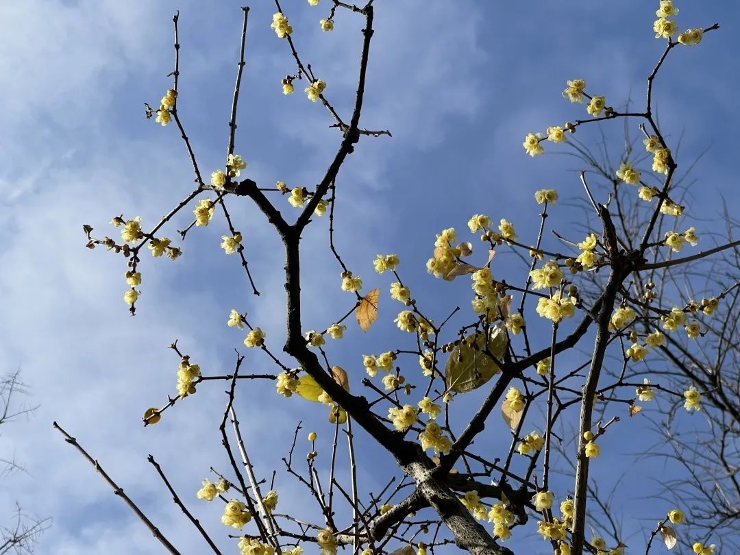 2023年的第一缕花香已经静悄悄地来了。在百花凋零的冬季,申城的蜡梅已在枝头绽放,这份独属于冬日的限定香味,总会在人们不经意间幽幽袭来,暗香浮动,沁人心脾。内外兼美的蜡梅,总是黄花累累,斗寒傲霜。和往年不同,今年的蜡梅还出现了花叶同挂枝头的奇观,让赏花市民啧啧称奇。