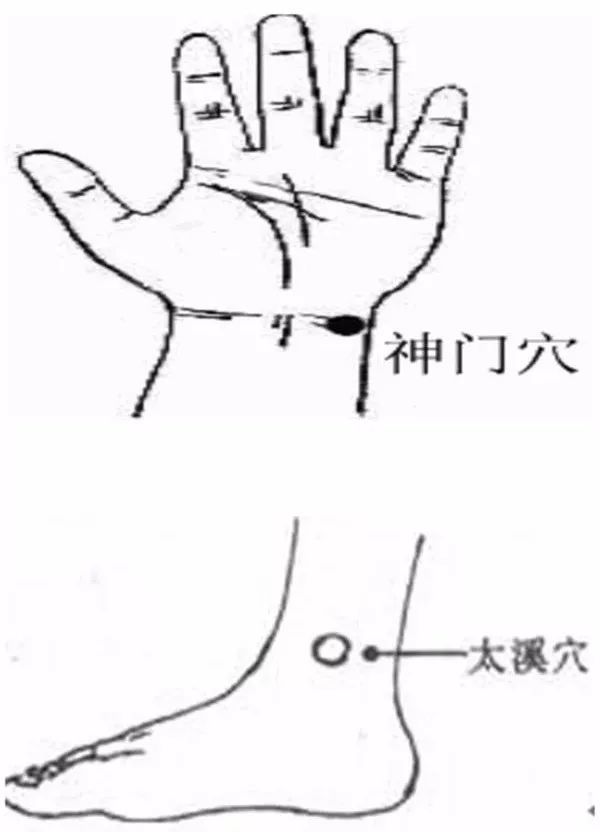 神门穴配太溪穴: