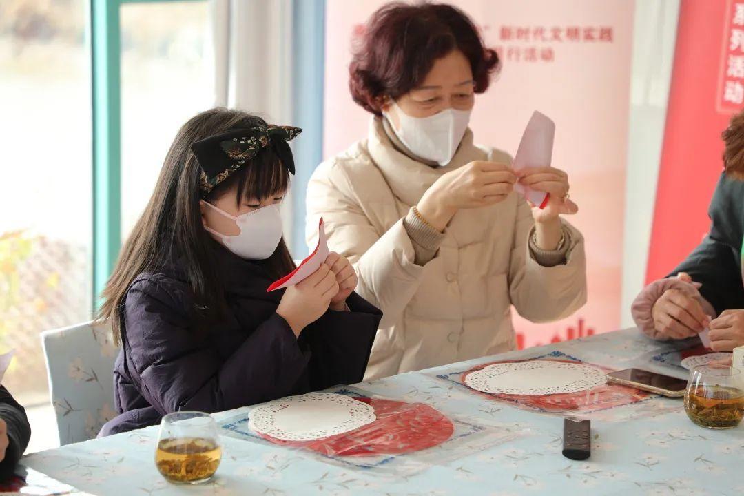 “千门万户曈曈日,总把新桃换旧符。”当天,南桥镇新时代文明实践志愿者们还带领村民一起体验南桥撕纸非遗活动,共同感受春节传统文化的独特魅力。小朋友们在家长和志愿者的帮助指导下,通过折叠、手撕、粘贴,创作出了一幅幅生动精美的撕纸作品,现场一片欢声笑语。华严村也特邀了乡贤们将美好祝愿化作一幅幅寓意吉祥的春联作品,赠送给村民和志愿者们,祈愿大家都能过上“幸福年”。