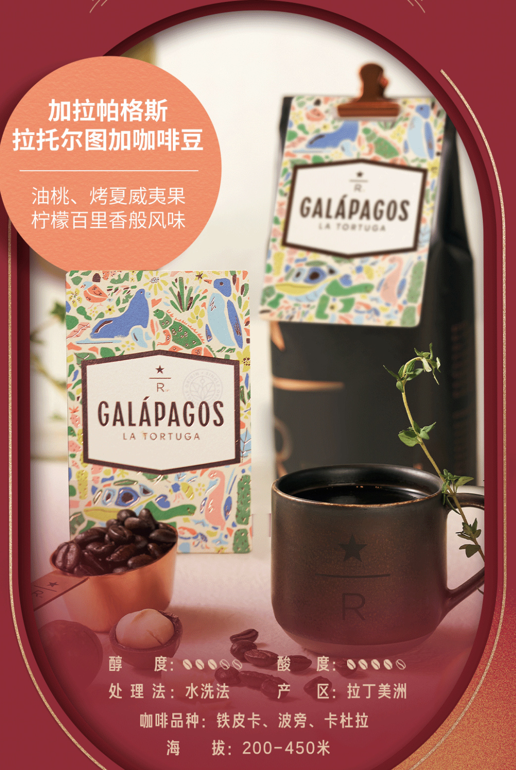 “品鉴级”的宝藏咖啡星巴克臻选加拉帕格斯拉托尔图加咖啡,因其丰富的风味以及壮美的咖啡原产地,赋予新年“宝”的内涵“觅得无价宝,奇遇途中藏”。