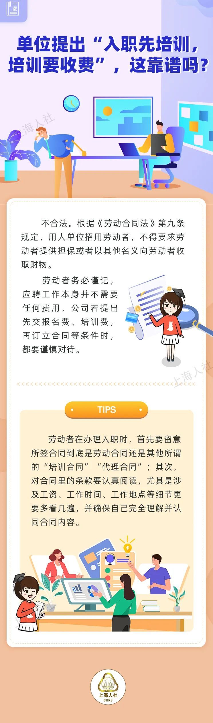 小杜最近在本市一家外贸公司找到一份销售的工作。上周去办理入职手续时,公司提出要先对新员工进行入职培训,将统一收取1000元培训费,并签订一份培训合同,等培训通过后,再订立劳动合同。粒粒博士,单位提出的这种要求合法吗?