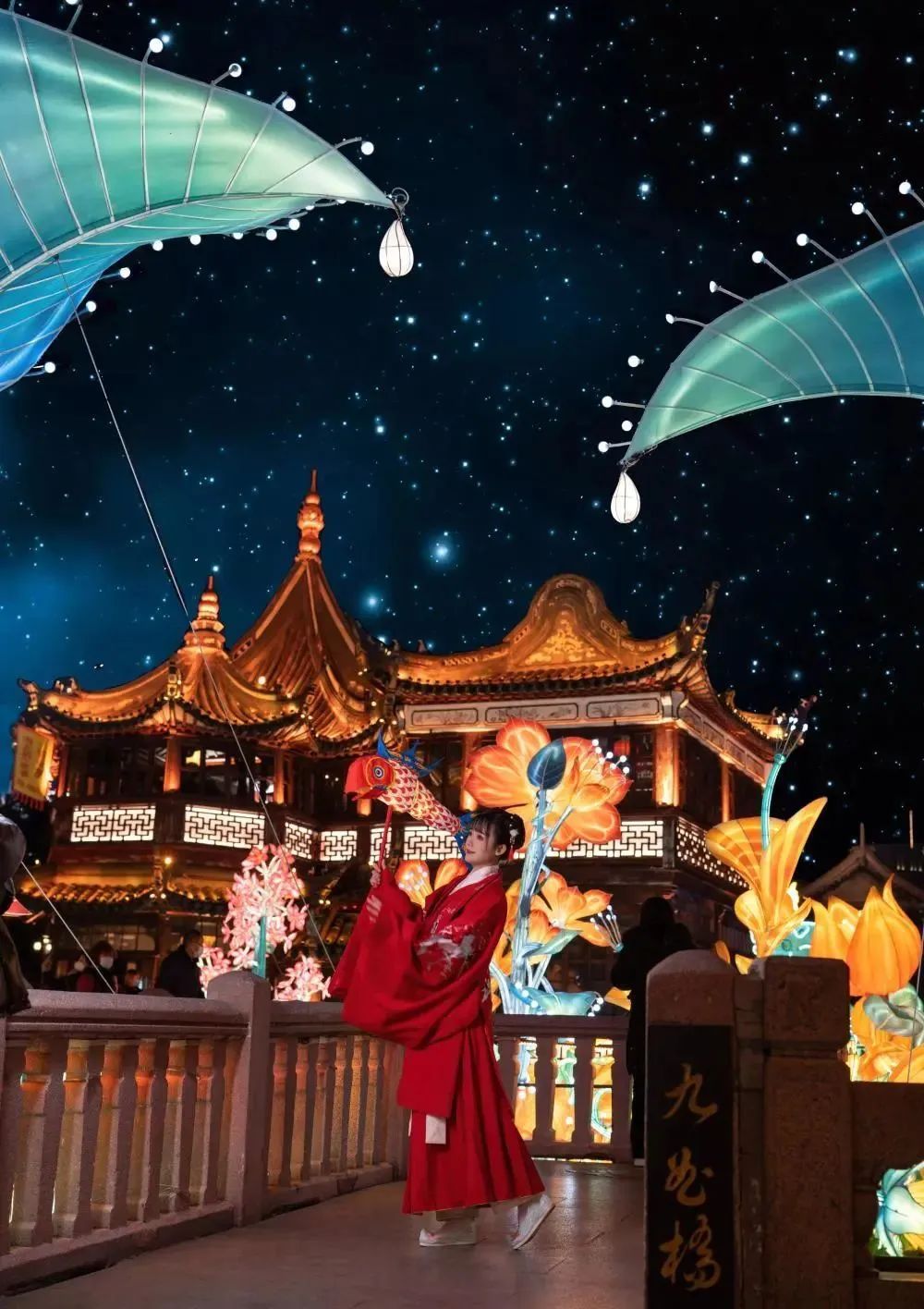 豫园彩灯吸引着年轻游客纷至沓来。统计显示,亮灯半个月以来,到豫园看灯的游客中八成都是90后与00后。记者在采访时,看到不少年轻人身着华美的汉服、化着精致的妆容,游走在豫园,拍照打卡,分享到社交媒体上。