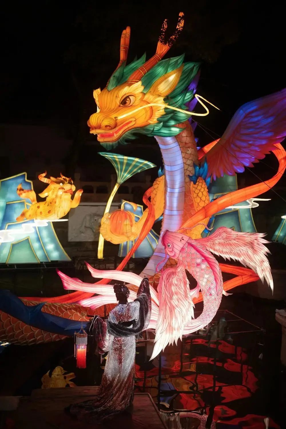 这些彩灯形象的名字、寓意以及典故,哪怕一个小小的细节,都经过主创团队的严谨考究。有的内容被做进游园手册,提供给游客细细品读;有的被做成铭牌,置于彩灯旁,还有的被做成了游客扫扫二维码就能听读的电子书。