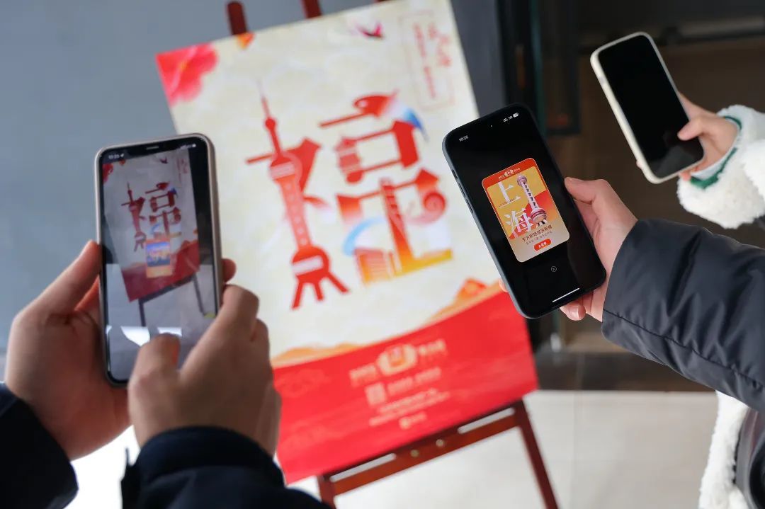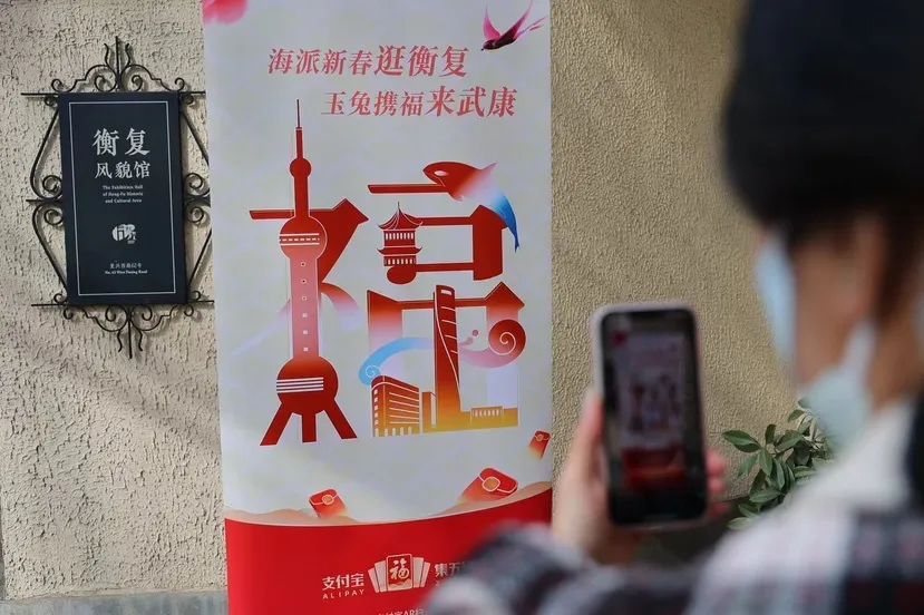 1月10日至21日活动期间,在徐汇魅力衡复地区的文旅景区地标附近,有上海“定制福”闪现。居民游客在线下使用支付宝AR扫福功能,扫一扫海报上的“福”字,就能集到“定制福”。