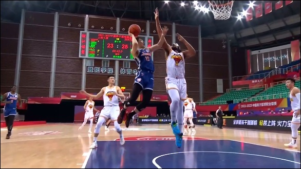 下半节上海久事男篮进攻效率有所下降,深圳男篮抓住机会,连续得分。随着孙浩钦接到布克的助攻,带球上篮得分,比分已来到40:50。