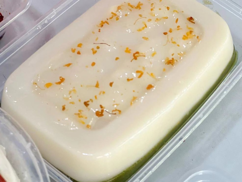 甜点桂花糕也很有新意,社区食堂特意制作了上层原味下层抹茶味的桂花糕,带回家切片摆盘配色也好看,同时吃起来又不至于甜腻,在传统中带着点创新。