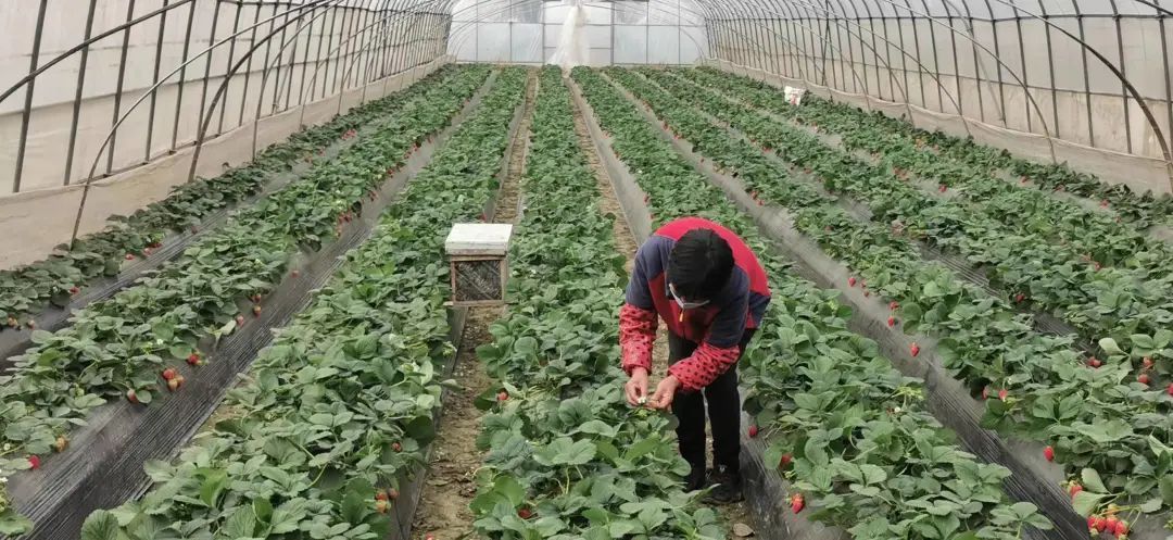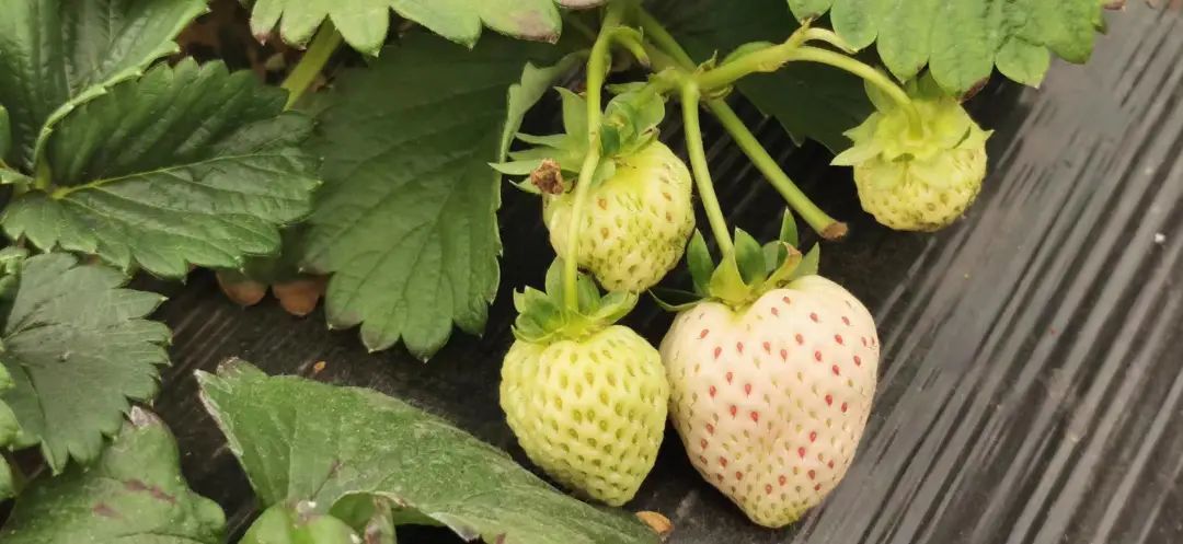 下午,草莓基地刚刚送走一批前来采摘草莓的顾客,基地工作人员开始整理草莓大棚,为草莓苗拔除杂草,细心呵护着这些冬日的美味。据了解,这里共种植着15亩地,近27个大棚的草莓,主要品种是张姬奶油和白雪公主。走进不同的大棚,一颗颗饱满的草莓掩映在绿叶之中,或是红艳欲滴或是白肤胜雪,空气中弥漫着草莓专属的香甜,让人垂涎不已。