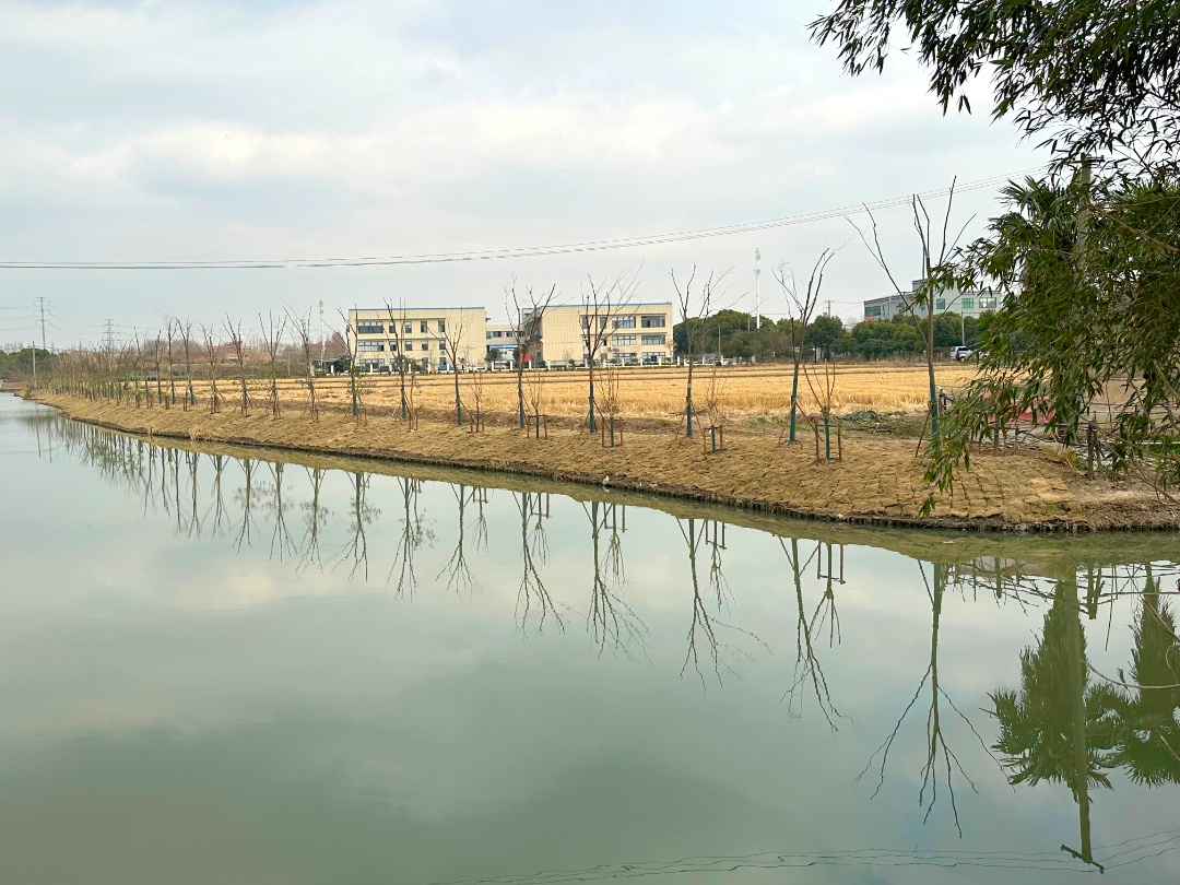 1.48公里的晋介泾是施晋村的主要河道,以前河岸杂草丛生,部分区域杂物堆积。改造后,河岸被绿化装扮一新,成为一条水清河畅、岸绿景美的“幸福河”。农闲时,村民都会来到河边散步,感受村子的新变化。